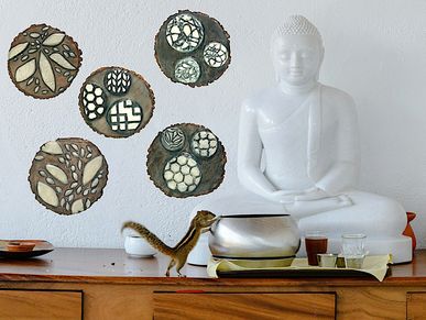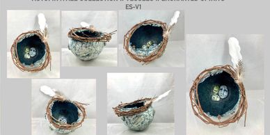 An ongoing collection consisting of paintings created with beeswax, tree resin, pigments & sustainable materials such as tree slices that make up the narrative of